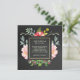 Estes bonitos convites de casamento chic mostram um adorável design de flor de pénia de cor aquosa. Seu convite de casamento está entre um quadrado central com folha de ouro falsa. O plano de fundo da placa tem um aspecto preto esmaecido de quadro. Nós usamos designs de LABFcreations.