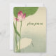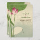 Este adorável convite para o casamento apresenta uma coloração aquática típica japonesa de um pássaro branco (arrependimento de neve), uma flor verde de lírio e uma flor rosa contra a água azul esmaecida. Sutil, elegante, incomum.Cores: Neutro, verde, azul e um pequeno pedaço de rosa fuschia.