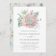 Convide familiares e amigos para o seu evento com este convite de casamento personalizável. Ele apresenta uma ilustração aquosa de um buquê pastel, rosa e verde suculento, com um padrão suculento correspondente. Personalize adicionando o nome, data, hora, local, endereço e outros detalhes do evento. Você pode personalizar ainda mais a parte de trás do convite mudando o padrão para sua foto ou qualquer outra imagem. Este convite para casamento de boho é perfeito para casamentos de jardim e de verão.