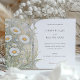 Convide seus convidados para o seu casamento com este convite elegantemente projetado com um tema de margarida de eterno. A frente do cartão apresenta um arranjo delicado de margaridas brancas no florescimento do cheio, acentuado lindamente por tons macios de verde e amarelo. O intrincado design floral é complementado por uma tipografia elegante que transmite os detalhes do seu dia especial. O verso do convite continua o tema com uma ilustração de margarida de cheio, acrescentando um toque de beleza natural e charme. Perfeito para casais planejando um casamento clássico, rústico ou inspirado na natureza, este convite captura a essência de uma celebração romântica e eterno.