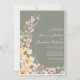 Faça o tom perfeito para sua celebração romântica com este elegante convite para casamento floral. Apresentando um sofisticado fundo verde-sábio adornado com delicados sotaques cor-de-rosa, cor de pêssego e natas florais em cascata graciosamente ao longo de um lado, este design expele o charme do eterno. Ideal para casamentos de jardim, rústicos ou de temas primavera, equilibra lindamente a elegância moderna com um toque de talento de vintagem. Personalize-o sem esforço com os detalhes do evento e crie uma manutenção convidativa para os seus convidados.