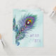 Convites de casamento de pavão azul turquesa e roxo lavanda lindos. Este convite de casamento de pavão azul turquesa é facilmente personalizado para o seu evento com a escolha de estilo de fonte, cor e texto na frente e no verso. Este é um design gráfico impresso sem pedras preciosas reais, joias, etc.