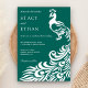 Incêndio aos seus convidados com este elegante convite para o casamento, com um belo pavão com a tipografia moderna contra um fundo verde-marinho. Basta adicionar os detalhes do seu evento neste modelo fácil de usar para torná-lo um convite de tipo único.