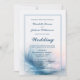 Um convite para o casamento de uma pena azul elegante. Os detalhes da cerimônia e local de recepção estão incluídos neste convite, assim como uma solicitação de RSVP para lembrar seus convidados de confirmar sua presença.