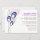 O convite elegante e clássico apresenta uma bela ilustração vetorial de penas de pavão num fundo roxo profundo. Perfeito para casamentos, chás de panela, festas de aniversário, doces dezesseis festas e mais!