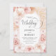Convite de casamento floral de Watercolor. Belo design elegante com sotaques botânicos tropicais pintados à mão e folhagem dourada. Possui delicadas orquídeas aquáticas, rosas, peônias, folhas de bananas secas, capim de pampas e fonte de tipografia de tendência. Você pode escolher convites impressos e/ou fazer o download instantâneo do modelo digital. Personalize com seus próprios detalhes. Perfeito para uma na moda romântica recepção de casamento de feiticeiros.