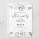 O partido continua! Organize seu casamento após a festa com estes convites modernos. Um elegante design de flores preto e branco com lindas peônias, perfeito para um casamento chic e moderno. Totalmente personalizável: você pode facilmente mudar a cor do texto ou das flores para se adequar ao seu gosto.