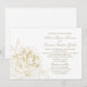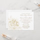 Um convite de casamento de luxo com uma paisagem, apresentando uma única grande flor de peônia dourada à esquerda com nomes em caligrafia elegante em um fundo branco. A paleta dourada cria um ambiente rico e sofisticado com todos os detalhes renderizados em tons dourados quentes. Todo o texto é totalmente editável para capturar as informações da cerimônia e recepção.