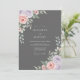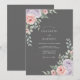 Este design elegante apresenta um fundo cinza carvão profundo que fornece um contraste marcante com os elementos florais suaves. Peônias rosa e lavanda exuberantes estão aninhadas entre eucalipto dólar de prata e samambaias verdes tênues. Os aglomerados botânicos criam uma estética equilibrada e sofisticada. Perfeito para uma noite romântica sombria ou um evento sazonal refinado.