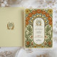 Celebre seu dia especial com este luxuoso convite de casamento inspirado no Art Nouveau, com um vibrante design floral de peões vermelhos, rosas amarelas ouros e sotaques azuis. A intrincada borda mostra linhas fluindo, detalhamento do ornamentado, e folhagem verde exuberante, todas as marcas da estética do eterno Art Nouveau. A paleta harmoniosa de vermelho, amarelo, azul e verde cria um olhar romântico e sofisticado. Com seu texto personalizável e design elegante, este convite é perfeito para casamentos de vintage, jardim ou de natureza natural, garantindo que seu evento comece com um toque inesquecível de arte.