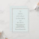 Celebre seu dia especial com este Convite Pearl Wedding personalizado, uma combinação perfeita de elegância clássica e simplicidade moderna. Este design apresenta uma delicada borda de pérolas, montando uma combinação saborosa de tipografia moderna mocha e uma graciosa letra de escrita caligráfica contra um fundo azul sujento e empoeirado. No centro, um monograma refinado das iniciais do casal é acentuado por uma pérola solteiro, acrescentando um toque sutil, mas sofisticado. Simples, chique e minimalista, este convite dá o tom para uma celebração de casamento eterno e inesquecível.