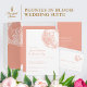 Este Convite para Casamento da Flor de Pêssego Elegante apresenta um belo e florescente pedreiro com letra escrita que é emparelhada com tipografia serifônica clássica e um bloco colorido de pêssego nas costas para um design limpo e elegante perfeito para uma gravata negra ou evento semissformal. Excelente para o tema do jardim Casamento da primavera.