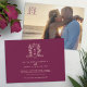 Monograma de coroa cardíaca com bagas e folhas entrelaçadas em convite à paisagem de casamento em vinho tinto e pêssego escuro. Personalize com suas próprias iniciais e detalhes do casamento. Desenho manual original e design por Sarah Trett para www.mylittleedenweddings.com