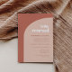 Minimalista, porém impressionante: adote este design tipográfico ligeiramente retrorreflector para a sua papelaria de casamento, com um design de arco moderno e terracotta e cores laranja queimadas. Texto, cores e fundo totalmente personalizáveis.