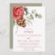 Celebre seu casamento no inverno com este convite festivo do Natal, com rosa vermelha de aquarela, pinecone e eucalipto verde. O ousado roteiro vermelho e o arranjo floral sazonal criam um sentimento quente e rústico — perfeito para casamentos de férias e cerimônias de inverno aconchegantes. Totalmente personalizável para incluir seus detalhes de casamento e torná-lo realmente seu.