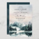 Este convite para o casamento mostra lindamente uma paisagem de montanha sangrenta, com florestas de pinheiros sujos e nevoeiro suave criando uma atmosfera de mistério e romance. Ideal para casais que amam a natureza, combina encanto rústico com design elegante. As matizes legal e a paisagem cativante evocam um senso de calma e intimidade, enquanto a refinada tipografia aumenta a sofisticação. Perfeito para aqueles atraídos para o silêncio da natureza selvagem.