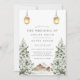 Abraçar a beleza serena do inverno com este convite de casamento temático. Apresentando uma cena encantadora de pinheiros cobertos de neve e uma cabana acolhedora, esta design capta a essência de uma paisagem de inverno pacífica. Acentuado pelas calorosas lanternas ao estilo vintage penduradas acima, este convite evoca sentimentos de calor e tranquilidade perfeitos para os casamentos no inverno. Ideal para casais que procuram celebrar o seu dia especial com um toque de elegância rústica e charme de inverno da natureza.