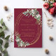 Para uma queda ou casamento no inverno. Um fundo de burlôncio decorado com cones, bagas brancas e verde. Uma falsa estrutura oval dourada. Personalize e adicione seus nomes e detalhes.