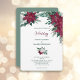 Aqui está um elegante convite de casamento sazonal, com belas borboletas de cor aquosa e poinsettia branca florescendo, bagas vermelhas e folhas verdes e azuis macios. As imagens florais têm uma pequena cobertura de confete de ouro para lhe dar um pouco de brilho. Há um buquê de poinsettia menor como divisor no meio. Seu texto personalizado está em verde azul correspondente no centro. A parte de trás do convite é verde de cinzas suaves que correspondem.