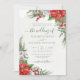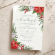 Bonito convite para o casamento, que inclui ilustrações botânicas a cores pintadas à mão de flores de poinsettia, verde de inverno, galhos de pínus e de pinheiros e bagas sagradas. Escolha perfeita para casamentos de Natal.