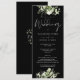 Um convite de casamento floral verde que apresenta uma tipografia elegante de escrita em caligrafia branca sobre fundo negro. Projetado por Thisnotme©