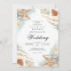 Evoca uma atmosfera serena à beira-mar com delicadas lavagens de aquarelas de azul, areia e sotaques de concha. Uma bela design para uma união inspirada no oceano.