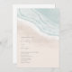 Tema do casamento em praia com ilustração aquática das ondas e areia do oceano.