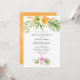 Convite de casamento de praia em aquarela com flores de hibisco rosa e laranja desenhadas para serem rápida e facilmente personalizadas de acordo com as suas especificações de evento.