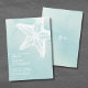 Simples Convite para Casamento de Praia de Summer de Cores Modernos. Um calmante fundo azul-d'água coloca a palco de uma elegante víbora de casamento costeira dando-lhe uma sensação de água oceânica. Um contorno branco de estrelas-do-mar dá um olhar de concha. Não é uma interpretação do topo e literal de uma praia, mas um cenário um pouco abstrato costeiro. As fontes de serifa negros são misturadas com uma simples fonte moderna para uma elegante, mas retida e víbora casual. As fontes são uma coloração branca para combinar com as estrelas, mas você pode mudá-las para o que quiser. Você pode até mudar a cor do peixe-estrela! No verso está um simples monograma inicial com estrelas-do-mar. Disponível como um convite impresso ou como um convite digital para download que você pode enviar por e-mail ou que foi impresso localmente!