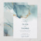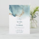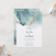 Um modelo de convite para casamento na praia que apresenta uma pintura de cor d'água abstrato de uma praia e ondas com um efeito de derrame de tinta dourada (o ouro é um efeito digital, não uma folha real!) e uma caligrafia moderna. Clássico e elegante, simples e moderno, é uma escolha adorável para um casamento de praia em qualquer estação, para um casal moderno.