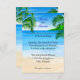 Encalhe convites do casamento do tema com águas azuis e as palmeiras tropicais. Grandes convites do casamento para casamentos da praia ou do destino. Encalhe a arte que caracteriza um Sandy Beach, umas palmeiras, e um fundo tropical das águas azuis para seu convite personalizado. Combinando RSVP, agradeça a lhe, e aos produtos adicionais do casamento disponíveis.