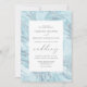 Este elegante convite de casamento apresenta um fundo de mármore azul pastel com veias cintilantes de prata. O texto personalizável da cinza de carvão é enquadrado por um retângulo branco. O design de mármore é repetido no reverso.