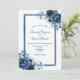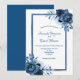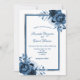 Na frente: Um fundo branco com uma simples falso quadro azul, prateado clássico. Decorado com flores, rosas em tons de azul. Modelos para seus nomes e detalhes do casamento. Os nomes são escritos com um script de estilo manuscrito, letras azuis. Traseira: fundo azul clássico colorido.