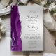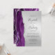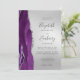 A borda esquerda deste elegante convite de casamento moderno apresenta uma cor d'água roxa, borda agitada com falso brilho prateado. O texto personalizável combina a escrita manual de cinzas de carvão, fontes em copperplate e itálico em um fundo de folha de alumínio prateada. O verso apresenta um design de agata prateado e roxo correspondente.