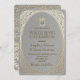 Azeitonas florais de folha de ouro, elegantes e únicas, e letras em combinação com o fundo clássico de prata de arenito. Glamoroso, rico, convite de casamento com o monograma real personalizado. Escolha perfeita para casamentos no inverno!