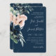 Convites Casamento de Prata Floral Azul com Marinho Blush E