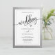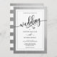 Simples e moderno, mas elegante. Convites de casamento clássicos personalizados de preto, branco e prata. Clássica caligrafia WEDDING com pequeno coração no meio. A fonte, o tamanho e a cor do texto podem ser alterados. Cartões fáceis de editar. A parte traseira do cartão é preta (mude para corresponder ao esquema de cor do seu casamento - clique em 'personalizar mais'). Iniciais de noiva e noiva. Entre em contato com o designer para obter outras variações ou cores.