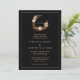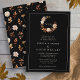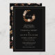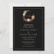 Este elegante e moderno convite para o casamento apresenta uma coroa de laranja queimada a aquarela pintada à mão e folhas de terracota, dahlias creme e bege, e belas rosas coloridas à ferrugem num fundo preto com o monograma da noiva e do noivo. Localize itens correspondentes na Coleção Romance de outono Preto.