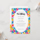 Essos convites de casamento fáceis de personalizar oferecem uma abordagem moderna do estilo retrô com flores de margarida hippie em amarelo brilhante, azul e rosa fúcsia. Os gráficos desenhados à mão são projetados para imitar o estilo clássico de impressão risógrafo. Todo o texto nestes convites está pronto para o seu toque personalizado com impressão preta simples definida dentro de uma moldura oval branca sobre um fundo floral colorido.