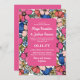 Belo convite para o casamento floral com flores em tons de pincel, azul, amarelo e coral com verde e hálito de bebê. Convite de casamento de verão com fontes encantadoras e flores bonito. Convite de casamento da primavera brilhante com flores coloridas e cor de sotaque rosa.