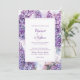 Convide seus entes queridos para testemunhar o florescimento do seu amor eterno com o nosso Convite de Casamento Lilacs. Este belamente feito convite apresenta as matizes violetas suaves dos lilases, estabelecendo um tom sereno e romântico para o seu dia especial. Personalize este convite com os seus nomes, na caligrafia elegante, na data significativa e no local, criando uma manutenção personalizada que reflita a beleza única da sua história de amor. Os lilases delicadamente pintados adoram o convite, garantindo uma apresentação visualmente atordoante. Abaixo estão os detalhes personalizáveis que guiam seus convidados para a celebração de uma vida. O Convite de Casamento Lilacs não só anuncia seu sindicato, como também captura a essência do romance e da renovação, assegurando que seu dia de casamento seja tão encantador quanto o amor que você compartilha.
