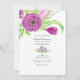 A aquarela botânica é convidada para o casamento com os sotaques ultravioleta, ameixa e verde-salva. As flores apresentadas são ranúculus, tulipas, violetas e crocos com forte influência impressionista chinesa. Ideal para qualquer tema ou casamento de jardim. O código QR no verso direciona para o seu local de casamento onde o pessoas pode aprender mais e rsvp.