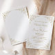 Este elegante convite de casamento formal inspirado na vintage apresenta o texto em letras douradas e fontes serif, enquadrado por um delicado motif vintage de ouro. O quadro é repetido no reverso.