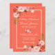 Convites Casamento de Quadro Branco Floral Moderno Coral