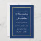 Cartão de Convite Branco e Azul Clássico de Casamento Moderno Elegante, Mas Simples, com Quadro Dourado