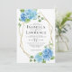 Convites Casamento de Quadro Dourado com Hydrangea Azul Flo