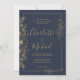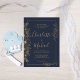 Um sofisticado convite de casamento azul-marinho com um elegante quadro floral de ouro. Perfeito para temas de casamento modernos, minimalistas e luxuosos. Totalmente personalizável para se adequar ao seu dia especial com detalhes de eterno e na moda.