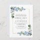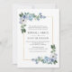 Um design azul de casamento com um dorso azul empoeirado e flores azuis e brancas pintadas com folhagem verde. Um design perfeito para o seu verão, primavera e casamento no inverno. Você pode personalizar o texto e os detalhes de cor neste modelo de convite de casamento.