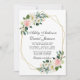 Cor de Água Moderna, Cor de Rosa Floral, Esbranquiçada e Dourada Convocação Geométrica de Casamento - Cor de Rosa