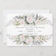 Design de cartão único e elegante, com rosas brancas pintadas e verde, sobre fundo branco. No verso, um divisor floral com noiva e iniciais nobres. Use a ferramenta Personalizar para adicionar suas informações, alterar fontes, cores. Para itens correspondentes, por favor, visite minha Coleção de Quadros de Rosas Brancas.